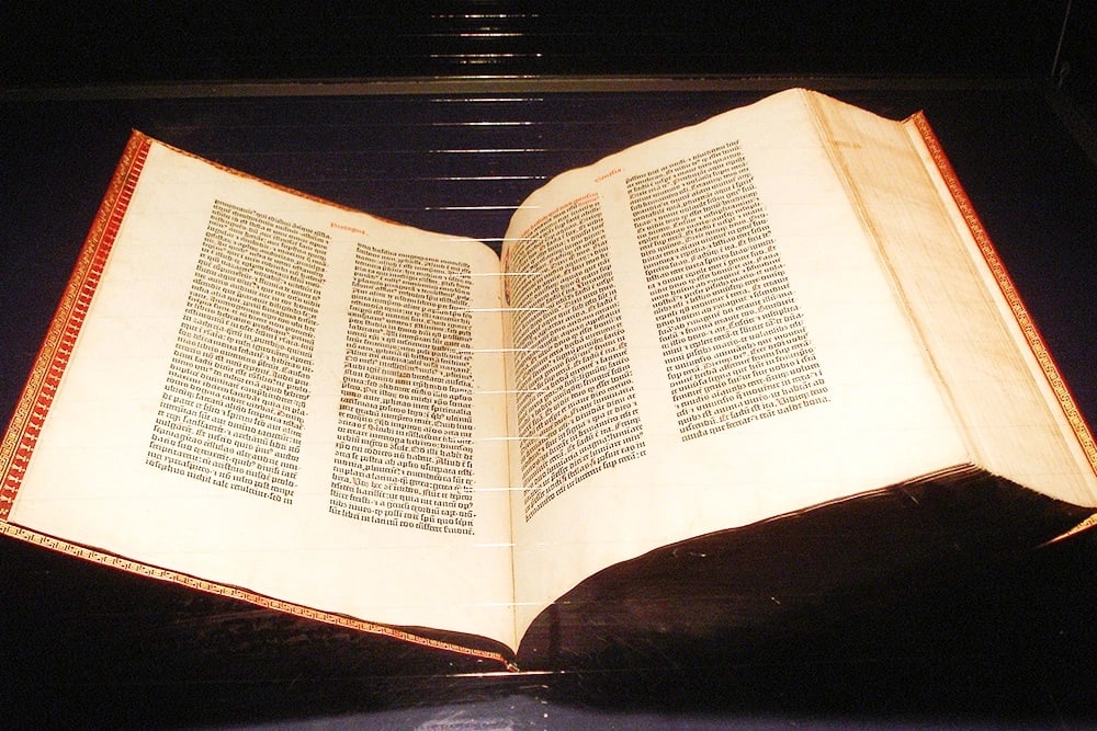 42-строчная Библия, известная также как Библия Мазарини, стала первым полноразмерным печатным изданием в Европе: почти 1300 страниц в двух томах, тираж около 200 экземпляров. До наших дней сохранилось около полусотни из них.