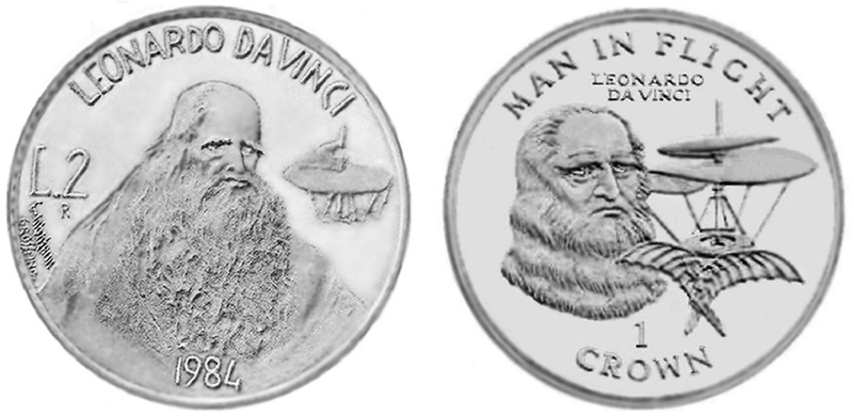 Как учёный и инженер Леонардо да Винчи обогатил проницательными наблюдениями почти все области знания своего времени. Особое место в его работах занимала механика - он называл её "раем математических наук". Среди его проектов, намного опережавших эпоху: наброски подводной лодки и танка, парашюта, пружинного автомобиля, экскаватора, телескопической лестницы, прокатных станов и ирригационных систем. Монеты с портретом Леонардо и эскизами его проектов выпускались в Сан-Марино (1984) и на острове Мэн (1995).